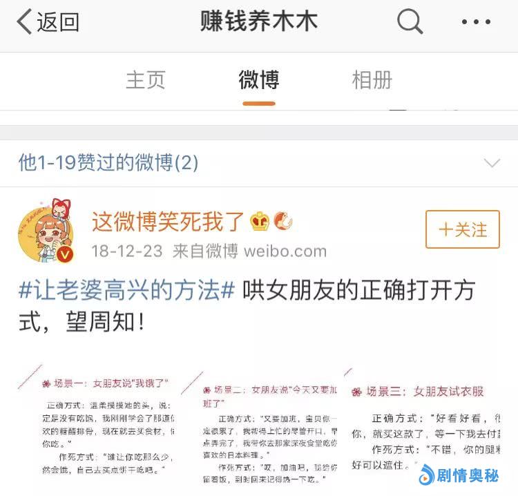 男主还开了微博并起名为“赚钱养木木”(木木是男主给女主起的专属小名),也是相当有爱了。
