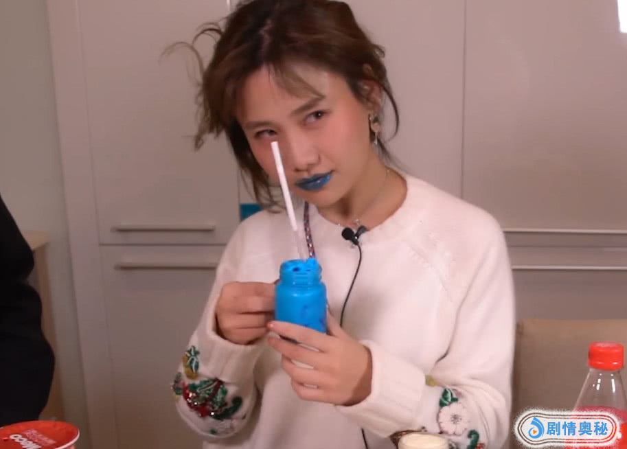 密子君和自己的朋友去一个便利店里面买了很多东西,据说这些东西是很好吃的,网友们肯定是看不出来,就是看他们两个怎么吃了,但是看吃完后的表情好像感觉一般般,不过有一个黑暗料理,也不知道大家有没有看见,也就是这个蓝瓶子的跟色素一样的东西,其实小编到现在也不知道这到底是什么?