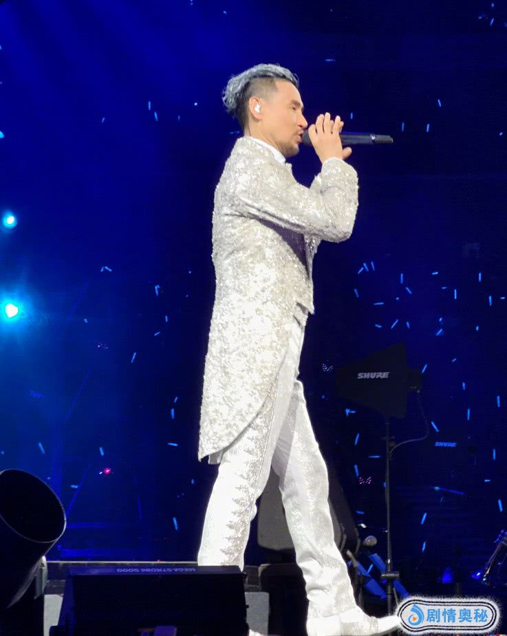 张学友还有这样的衣服,他穿着一件银色亮片的鱼尾服,看上去很好看,他搭配了一条银色亮片裤子,看上去超级潮流,他搭配的是一双白色皮鞋,看上去更加时尚了,他的气质也真是好。