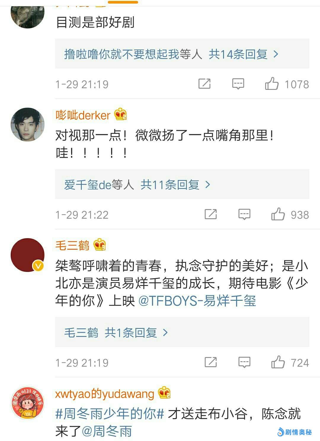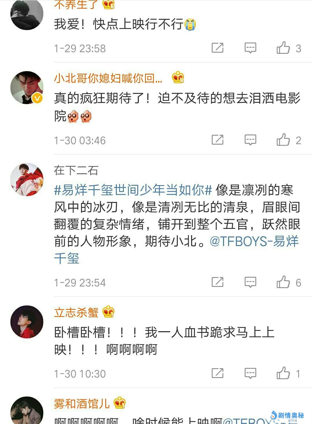 网友们看到新发布的片段,纷纷表示真的是超级期待了啊,易烊千玺的眼神真的是超级有戏啊,有种台湾电影的既视感,尤其是那个淡淡的笑,眼睛里是藏不住的喜欢,完全就是由内心所散发出来的,还有表示北北在笑我的内心在哭啊,到底什么时候能够上映啊,真的是快点上映吧,还有看过小说的原著粉则表示真的是迫不及待想要泪洒电影院了呀!