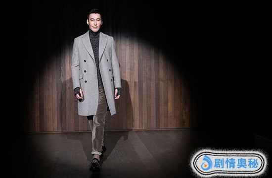 区别于常规T台,这次的秀场破格采用了充满故事感的剧场式设计,上下两段楼梯让走秀难度大大增加。胡兵身着米色大衣搭配高领毛衣开场亮相,简约从容之余,亦不失儒雅气度。值得一提的是,胡兵当晚还以第二套Look再度登场,polo款上衣搭配西装长裤,尽显长腿优势。