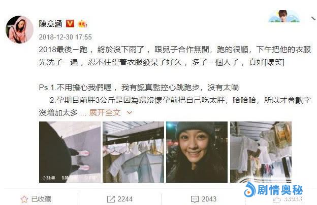 据陈意涵自己表示,她怀孕期间体重基本上没有什么变化,只胖了3公斤,而且宝宝检查各方面也都是非常的正常的,怀孕了之后也没有放弃自己,一直都在坚持运动,经常给我们展示5公里跑步的照片,也应该很少有人能够做到吧,太让人羡慕了。