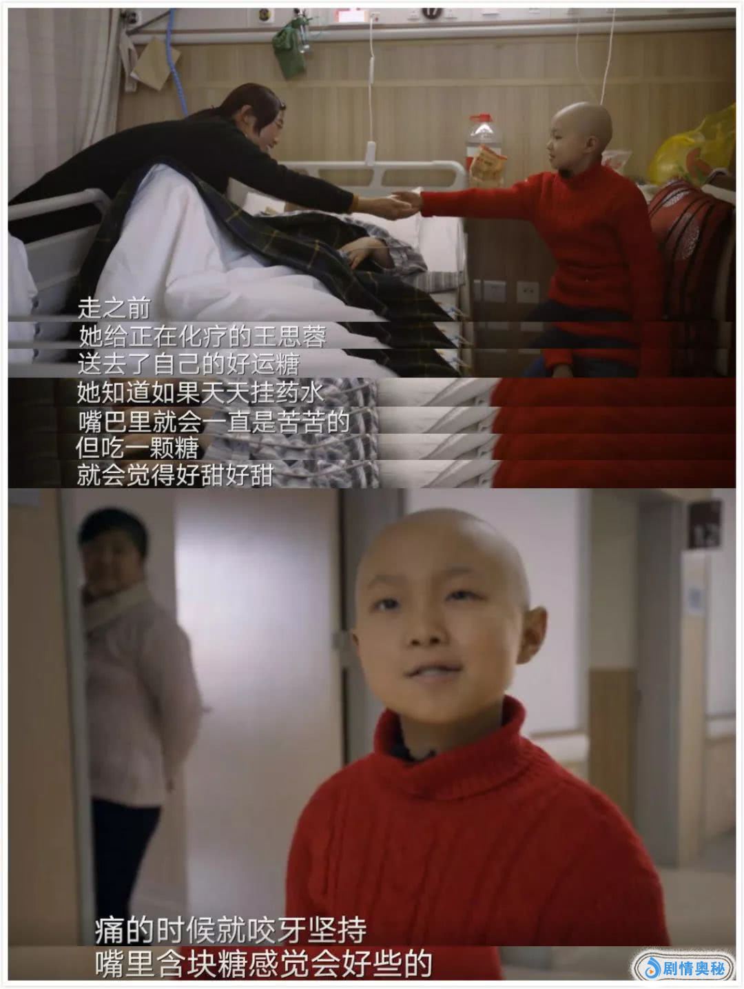 年龄最小的刘子涵是他们几个中最早结束治疗的。走之前,她撕碎了自己的手腕带,还送给王思蓉几颗糖。她说,痛的时候就咬牙坚持,嘴里含块糖会感觉好些的。