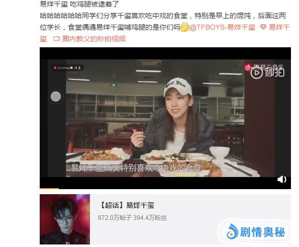 估计易烊千玺自己看到这个视频也会觉得自己的面子都没了吧,在千纸鹤的面前,易烊千玺的形象一直都是比较高冷有范的呀,没想到学长们会去食堂逮易烊千玺啃鸡腿。不过易烊千玺对于中戏的食堂也是非常中意了,羞于公开表达自己情感的千玺,还在采访中对着中戏食堂阿姨放过彩虹屁呢。