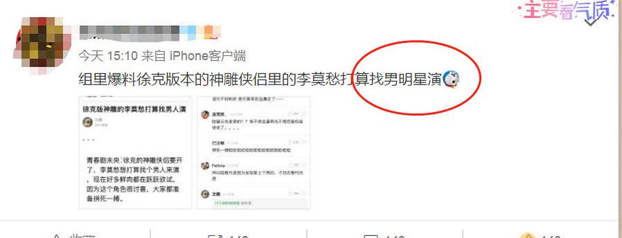 《神雕侠侣》中人物众多,除了大家熟知的小龙女和杨过这对旷世绝恋的一对之外,其他的角色却也是在这几年成就了经典,就拿此次徐克这版电影中的李莫愁来说吧,据片方最新的消息,电影版的李莫愁将采用男演员来饰演。额,这是不是毁原著呢,究竟是什么样的一个演员要做出多娘才能演绎出我们心中的李莫愁呢?去年不是一直打击这种“娘”文化吗?