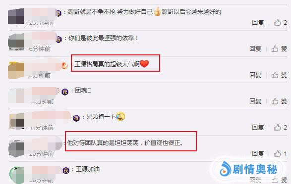 其中,有网友便评论:“他对待团队真的是坦坦铛铛、价值观也很正”、“王源格局真的超级大气啊,不争不抢,努力做好自己,源哥以后会越来越好的!”