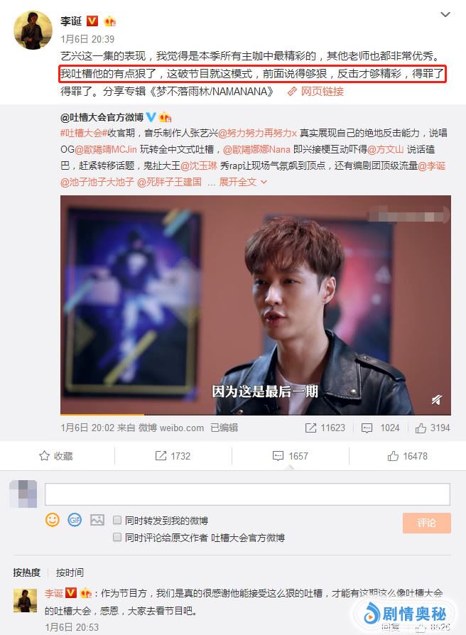 但是面对流量明星的到来,虽然现场嘉宾也都尽力去吐槽了,但是事后各位嘉宾的态度也是截然不同。比如李诞,在吐槽张艺兴的时候就一边吐槽一边顾忌张艺兴的心情,吐槽完了也是连忙在网上发文道歉,这样的举动也是让人忍俊不禁了。而另一边的池子,在吐槽完张艺兴之后却宣布了退出《吐槽大会》的消息,虽然池子的退出与吐槽张艺兴并没有什么关系,但之前因为他吐槽了某流量明星而受到了很多网友们的争议,而这大概就是流量明星的可怕之处吧。不知道网友们对此怎么看呢?