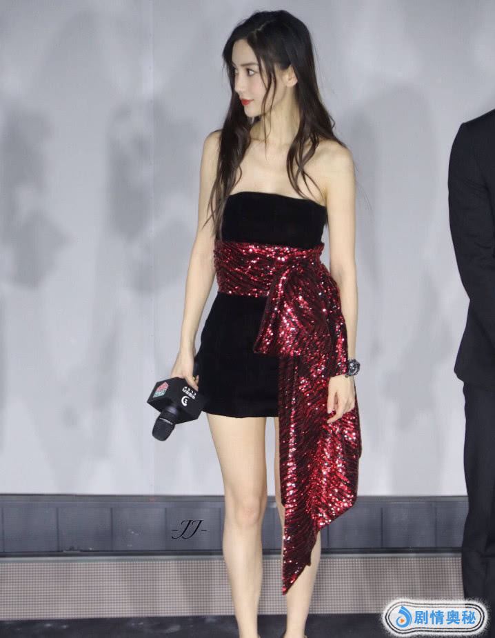杨颖和科学家同台,这就是她当时的打扮了,她穿了一条黑色抹胸连衣裙抹胸的设计,实在是太美了,腰间还有红色亮片装饰,看着就更好看了,杨颖的气质很好,这身打扮真的太美了。