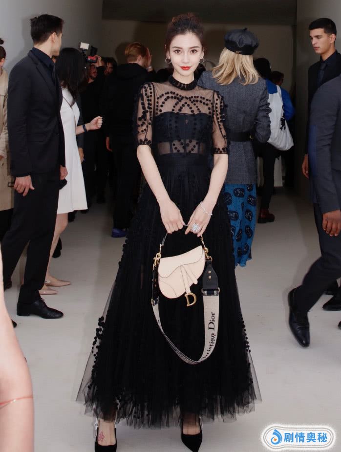 当然杨颖的打扮是很美的,她这次穿了一条黑色纱网连衣裙,这裙子若隐若现,真的超级性感呢,还穿着一双黑色高跟鞋,有点拉长腿型的效果,她拿着的是一个米白色马鞍包,看着就更潮流了。