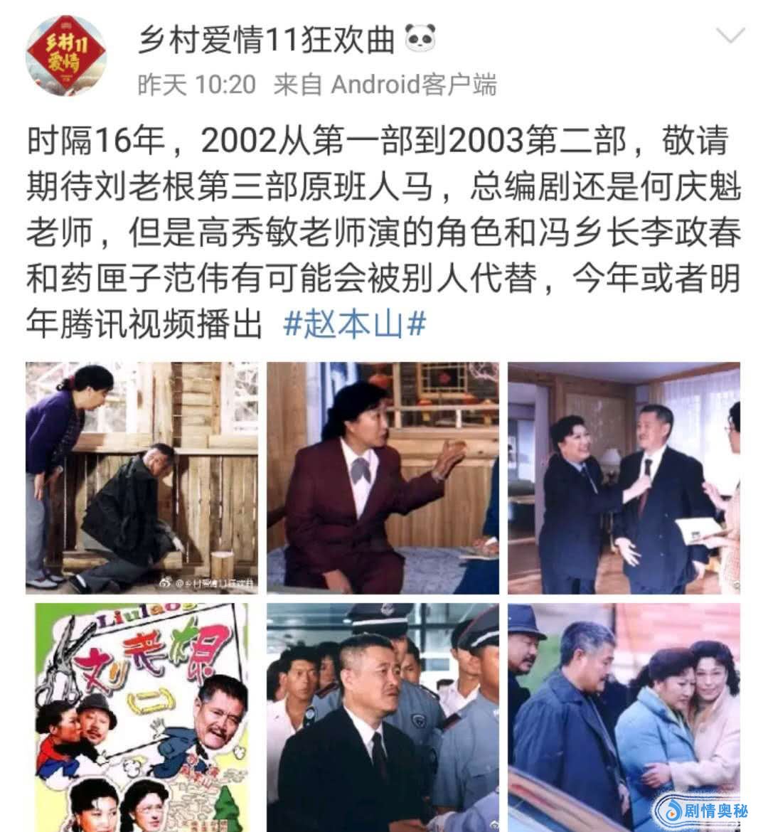 前不久,《乡村爱情11》官微公布了开播时间,选在了农历小年夜,这可让乡迷们高兴不已。另外,他们还带来了一个喜讯,那就是《刘老根3》也开始筹拍,并计划于年底或明年开播。