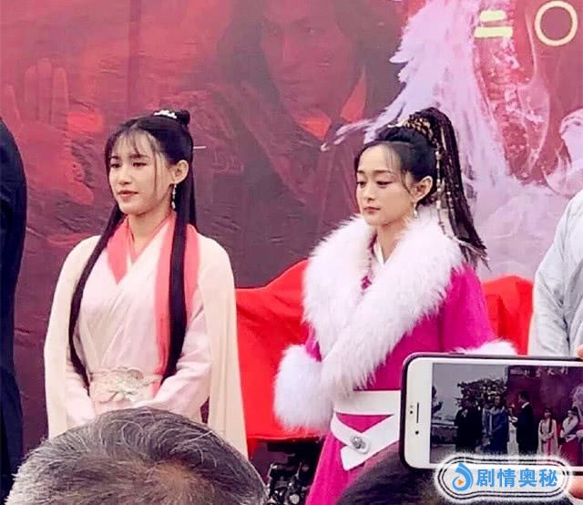 何泓姗在开机仪式上的造型是一身紫衣,高高的马尾辫,很有江湖儿女的风范,何泓姗在和文咏珊合照时,竟不输分毫,精致的小脸,标准的五官看似比文咏珊还要上镜。而何泓姗今年31岁,比文咏珊还要大1岁,基本算是同龄人,但何泓姗看起来很灵动,比文咏珊要年轻一些。