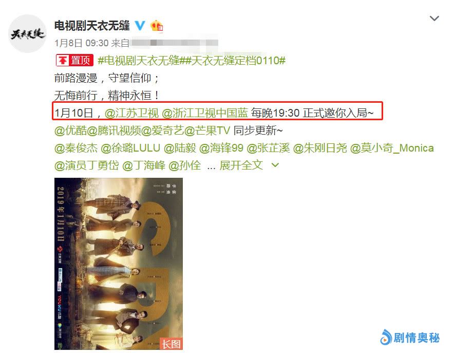 说到能让人激情澎湃的电视剧,肯定就是悬疑谍战剧了,剧荒们再也不用担心了,因为备受瞩目的《天衣无缝》将近来袭,终于给出了定档消息。目前这部剧已经官宣播出的事情。这部剧将在1月10日播出,跟观众见面,七位男神燃爆全场,陆毅秦俊杰值得期待。