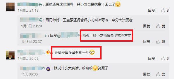 在活动结束之后,王宝强工作室还曝光了两人的青涩照,释小龙胖乎乎的很可爱,王宝强也很稚嫩。大家都在感慨两人渊源颇深,也引发了不少网友的热议,纷纷调侃两人的身高差,这么多年过去了,王宝强的演技涨了不少,不过看样子身高却没有什么变化。以前比释小龙高半头,过了这么多年,没想到释小龙比他高了这么多。