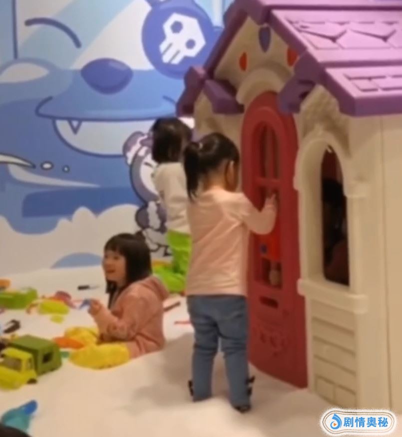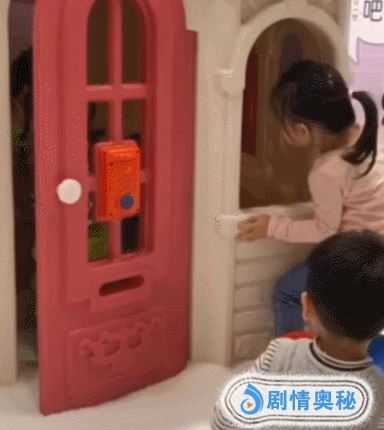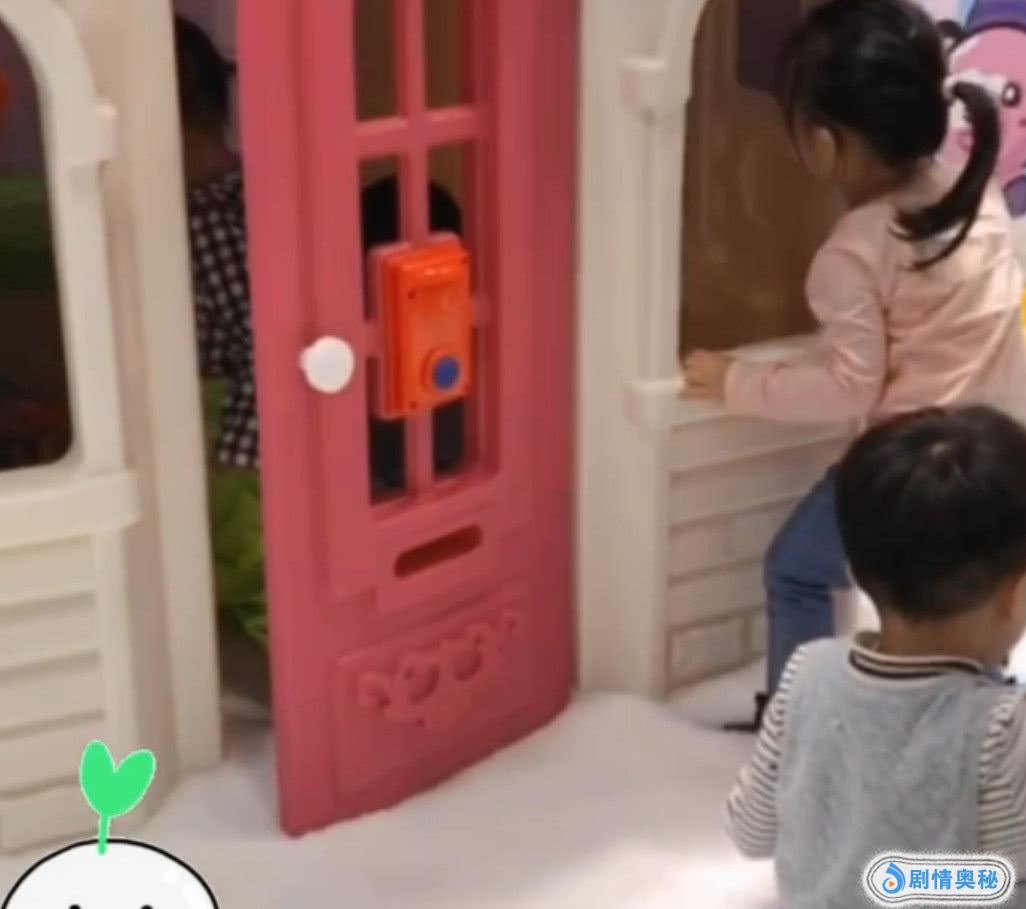 视频中小米粒头扎高马尾,身着粉色上衣搭配小长裤,想去小屋中玩的她,站在小屋外也是观察了好一会儿之后才鼓足勇气去开小屋的门。