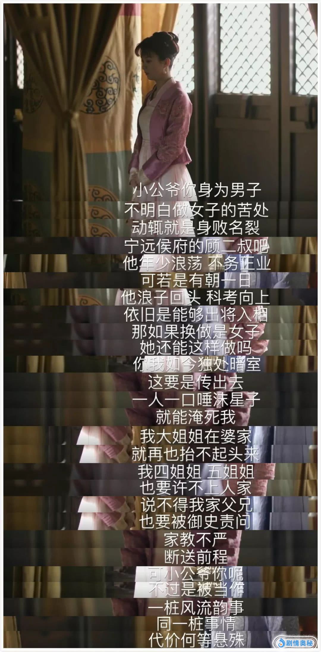 对于男女性别的不平等,明兰也有着清醒的认识。同一桩事情,女子和男子付出的代价却悬殊至极。自古如此,如今亦然。