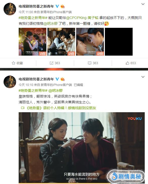 2019年易烊千玺主演的两部电视剧《艳势番之新青年》、《长安十二时辰》都将播出,对于千纸鹤们来说真是让人非常开心的一件事情了。在1月9日的时候,电视剧艳势番官博也是预热放出了一波物料,其中有一段预告视频,加上一套动图。虽然这次预告主要内容还是胡冰卿饰演角色戏份,但千纸鹤们还是从中找到了易烊千玺的镜头。