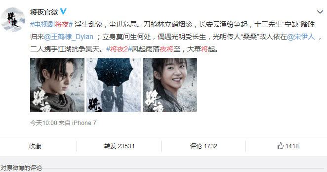 《将夜2》官宣,男主换成了王鹤棣,桑桑不变,你还追吗。《将夜2》官宣了,之前一直传闻主演大换血了,小编还不相信,如今信了,陈飞宇将被替换了,王鹤棣接替陈飞宇, 重新演绎宁缺,桑桑还是宋伊人,这样的新组合,你能接受吗?小编已经习惯陈飞宇和宋伊人这一对CP了,如今突然更换了,真的接受不了啊!小编还是觉得陈飞宇更加符合宁缺这个人物,毕竟他演绎第一部,已经让人适应他塑造的宁缺。