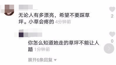 其中,有网友便评论:“无论人有多漂亮,希望不要踩草坪”,对此,有网友也反驳表示:“你怎么知道她走的草坪不能让人踏”。你如何看待网友的这些争议?