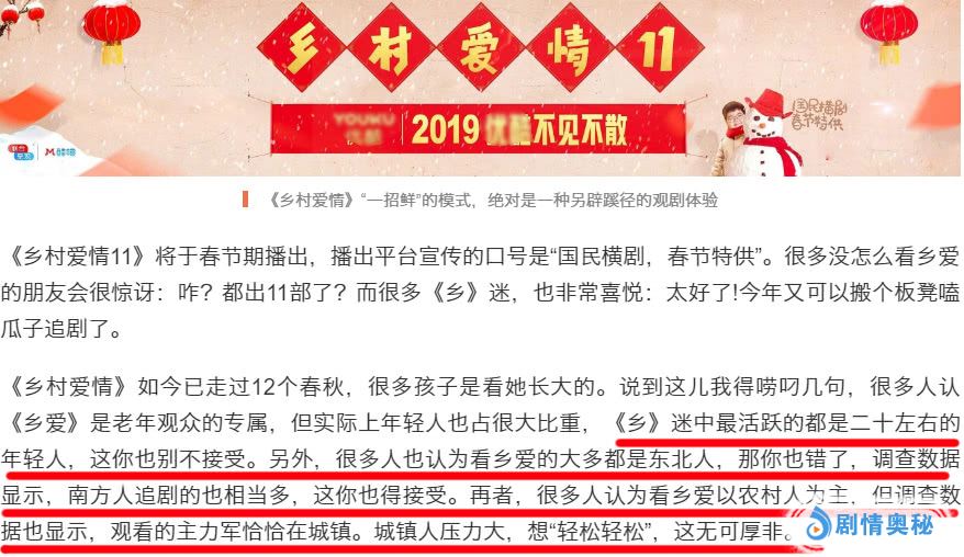 这个数据一出,确实让人很惊奇,但是回顾我写的《乡村爱情》文章中,从下面的评论语气来看,确实是年轻人,而且也有南方网友表示,从这部剧中了解了东北人的诙谐幽默,看着不累,能让紧张的工作舒缓一下压力,哈哈一笑就完了,哪怕是快进呢,也总有自己喜欢的角色和桥段。