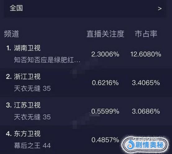 电视剧《知否》开播之后收视屡创新高,在收视排行中稳居榜首,紧接着带来的是湖南卫视本周一的收视率破2,遥遥领先于其他卫视,稳居第一。