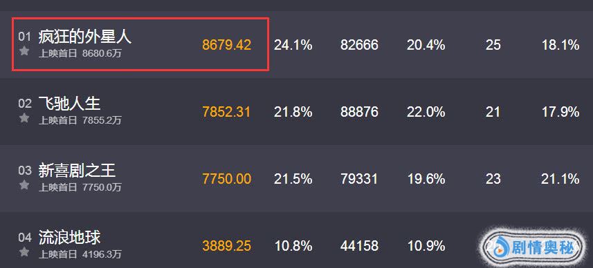 再过几天春节就要来临了,而今年的春节档可谓是“神仙打架”,不仅有黄渤的《疯狂的外星人》、沈腾的《飞驰人生》、周星驰的《新喜剧之王》还有吴京的《流浪地球》,各大大片群雄涿鹿。不过从预售票房的成绩上看,黄渤凭借着《疯狂的外星人》拿下了先机,如今《疯狂的外星人》的预售票房已经突破了8600万,预计到正式上映的时候,《疯狂的外星人》将达到一亿的预售成绩。