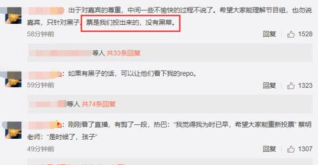 在评论中,该网友再次表示,票就是观众投的,没有黑幕,只是不希望有黑子来故意黑。