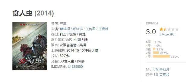 《神探蒲松龄》的导演是严嘉,名气不大,到目前为止也仅有一部电影上映,《食人虫》是2014年的电影,演员阵容不差,但评分只有3.0。