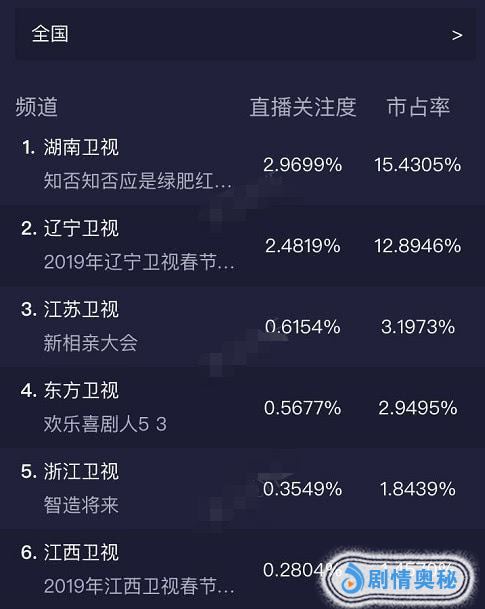 这是今晚最新出炉的电视收视率排行榜,我们要恭喜赵丽颖,在她的出彩演绎下,《知否知否》实时收视率突破2.9%!超过了群星荟萃的辽林卫视春节联欢晚会(收视率2.48%),同时也将热播综艺《新相亲大会》和《欢乐喜剧人》远远甩在身后,赵丽颖成功扛起了该剧的收视率。
