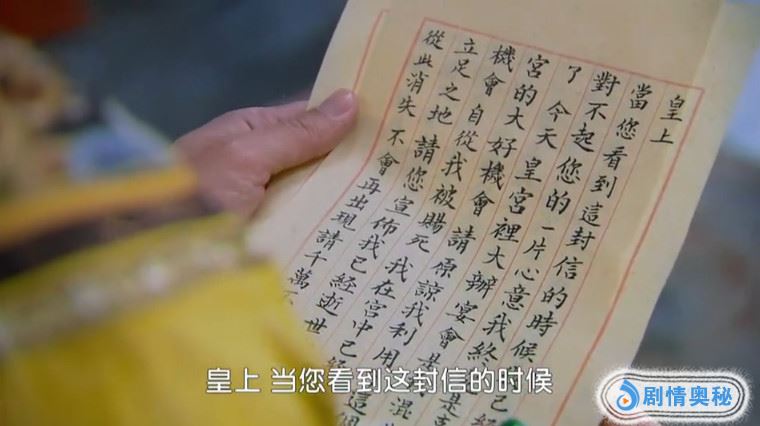 在新版《还珠格格》中,含香临走之前给皇上留了一封信,通篇都在说这整件事情都是她自己的主意,请求皇上不要牵连任何人,还着重提到了小燕子和紫薇,告诉皇上,千万不要怀疑这两位格格。