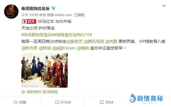 正式官宣将在2月11日上线播出,由于卫视的古装剧限额,所以《独孤皇后》采用了网播的方式,虽然不能上星,但对于剧粉而言也是一个福利了,相信到时能够掀起追剧热潮。