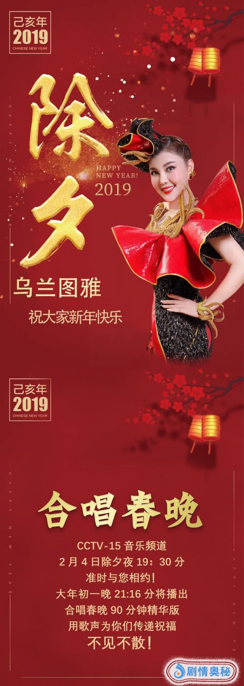 今晚19:30,CCTV-15《合唱春晚》乌兰图雅陪您一起欢度除夕。