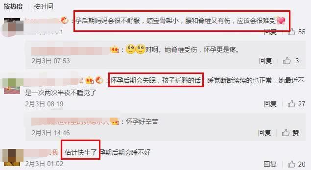 对此,有网友也替赵丽颖说话评论:“估计快生了,孕期后期会睡不好”、“孕后期妈妈会很不舒服,颖宝骨架小,腰和脊椎又有伤,应该会很难受。”