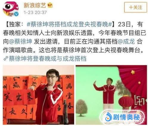 朱一龙、邓伦还要迪丽热巴也是首次登陆央视春晚的舞台引起了网友们的热议,不过最备受关注的还是成龙的搭档,先前有媒体独家爆料了成龙将搭档“流量王”蔡徐坤,蔡徐坤出道于《偶像练习生》的NPC男团,他担任了NPC的C位,如今蔡徐坤出道不到一年粉丝量已经突破了2000万,而蔡徐坤也成为了娱乐圈的众捧的艺人。如果蔡徐坤真的登上央视春晚肯定能够吸引众多粉丝,不过今日央视春晚的节目单正式出炉,并没有“蔡徐坤”三个字出现在名单中。