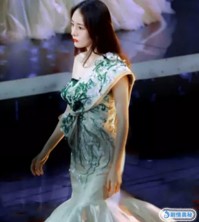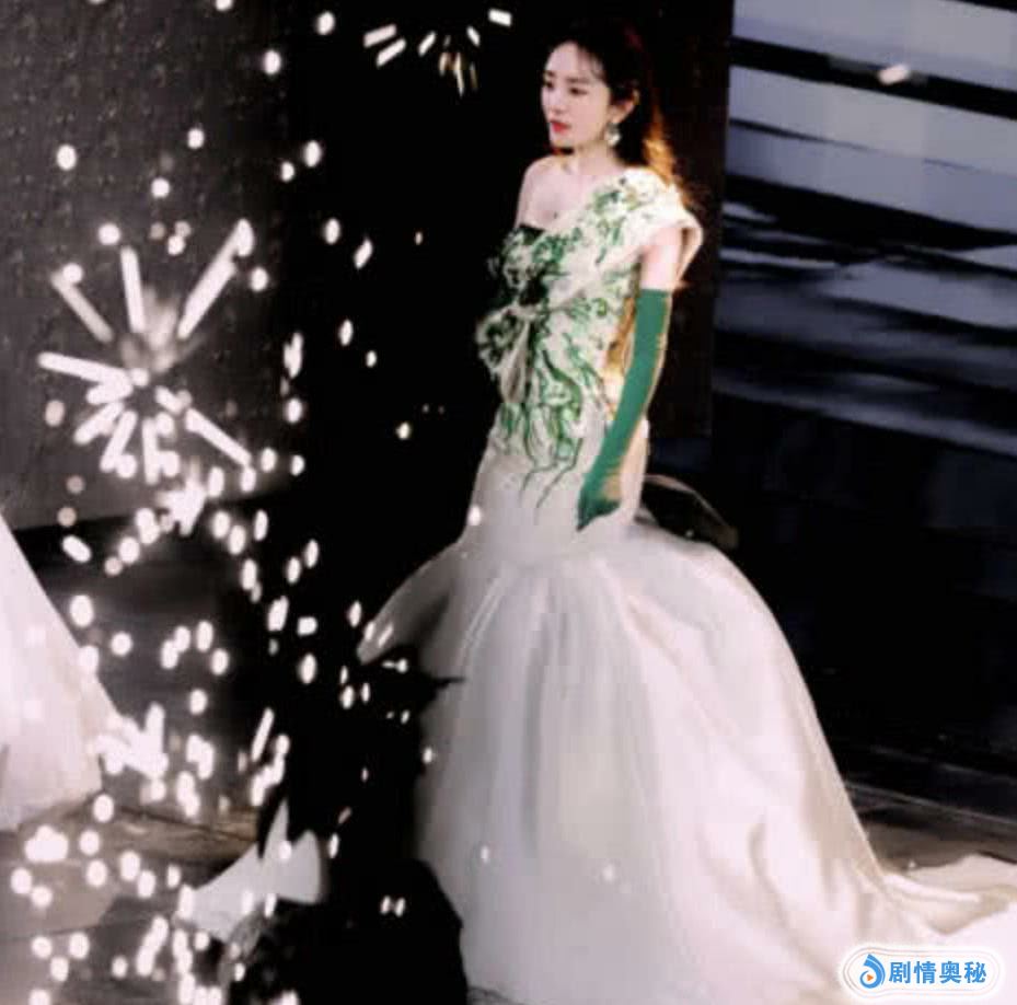 她这身绿色系的礼服,将整个人衬托的就像是散落在人间的仙女一样,很少有人能够把衬得人肤色黑的绿色驾驭的这么完美,这款造型的设计每一个细节都是精致的。