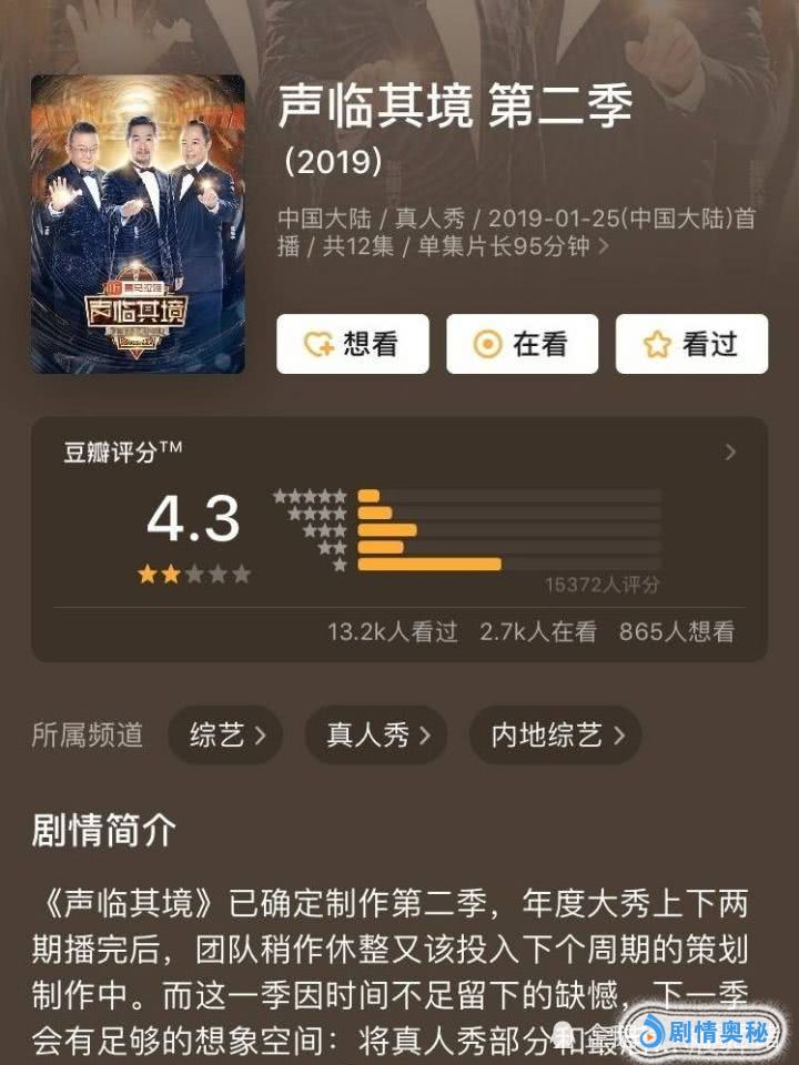 不过在《声临其境2》的第二期节目上线播出之后,这档节目在豆瓣上的口碑评分可以说是直线下降,截止到昨日已经跌到4.3分了。而其中有不少人认为当红小花迪丽热巴获得周冠军名不符实,同期的蔡明、朱时茂、白客也很有实力。