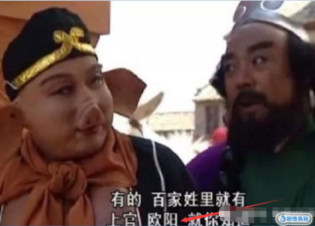 穿帮镜头二:猪八戒和沙和尚竟然说当时百家姓里面有上官,欧阳,大家应该知道故事发生在唐朝,但是欧阳这个姓氏应该发生在宋代。哈哈,你们是神仙怪不得这么厉害了。