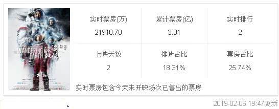 吴京是很多网友喜欢的一位功夫明星,自从自导自演了电影《战狼》和《战狼2》后,吴京就成为了票房保证。近日,由吴京参与投资和拍摄的电影《流浪地球》,在5日上映后,截止到2月6日20:00,累计两天票房3.81亿元,豆瓣评分8.3分。