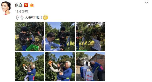 今日(2月6日)张庭也在微博晒出老公儿女的一组照片,并附文表示:“大丰收了”,还不忘附上一个捂嘴偷笑的表情,看来心情很不错。