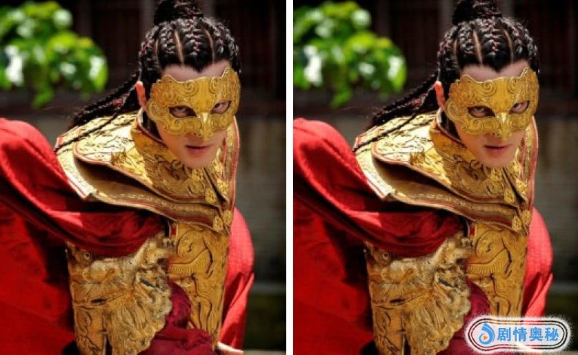 抗住了上面这么多戴面具的古装男子,却栽倒了上面的这位中。在剧中他本来也是一位皇子,在少年的时候亡国了,还和母亲分离了,为了能够将母亲救出来,同时振兴家族,他不得不认贼人做师傅,在经历了多年的历练,终于将母亲救出。本来一直都是自私自利的他,也变得有爱心、责任心。在剧中一出场的时候他就是带着金色的面具的,穿着一身盔甲,特别的威武还有气势。