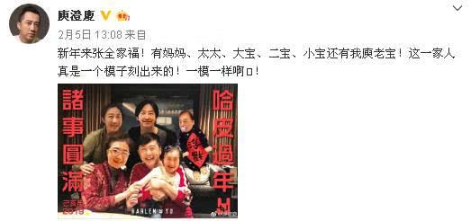 一向对私生活相对保密的庾澄庆(哈林)罕见于2月5日晒出全家福,沒想到却惊呆网友!照片中其实是庾澄庆一家六口,“庾澄庆,庾澄庆妈妈,庾澄庆老婆张嘉欣,和三个孩子!”