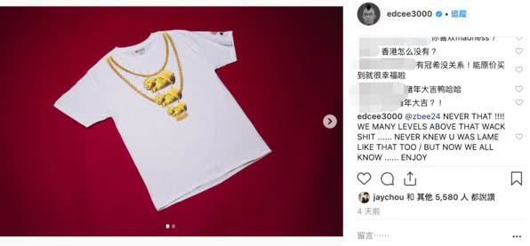 事情起因是因为陈冠希近日在IG晒出自家潮牌2019年新款T恤,T恤上印有金项链和金猪相当应景。陈冠希发表的这条动态,还引来了周杰伦点赞!