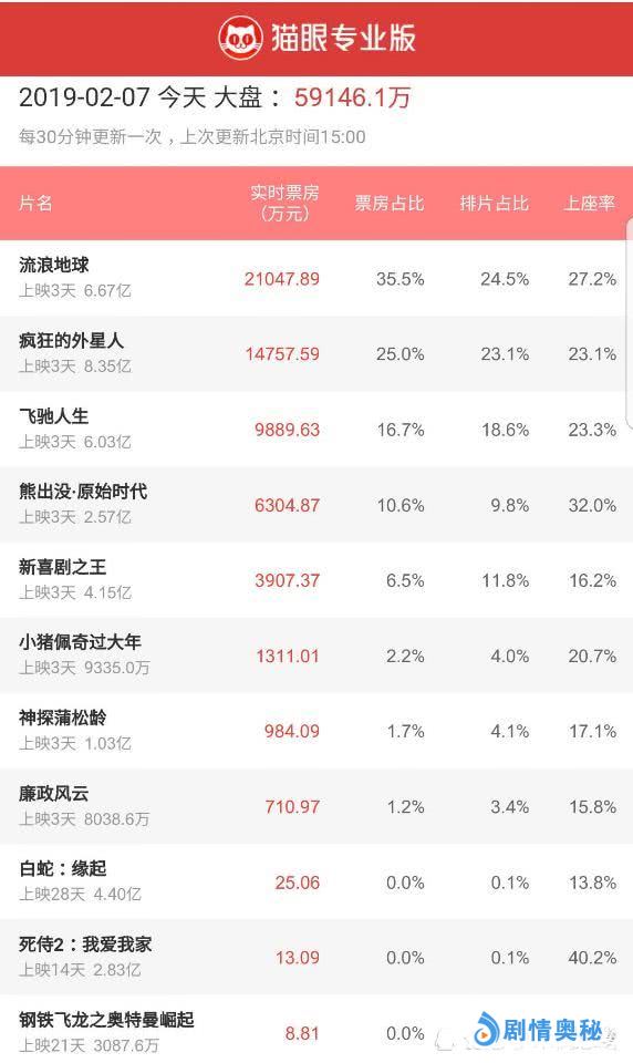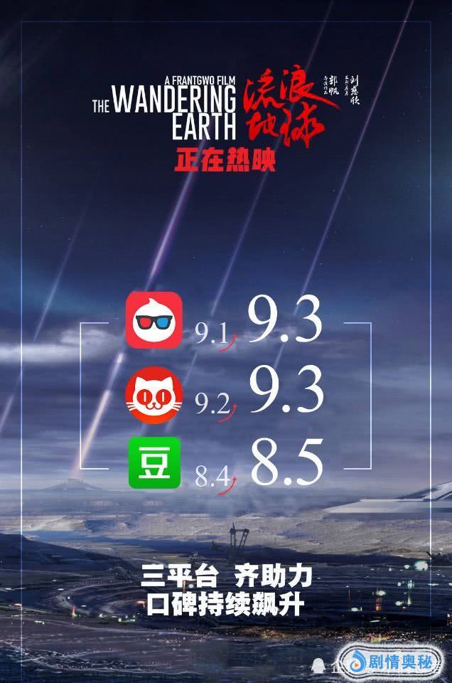 不过在今日猫眼实事票房当中,《流浪地球》的票房是居于首位的。其中主要的原因,相信也是因为这部影片的口碑评分的确是很高的。在豆瓣8.5分,猫眼9.3分,淘票票9.3分,这个成绩的确是非常不错了。