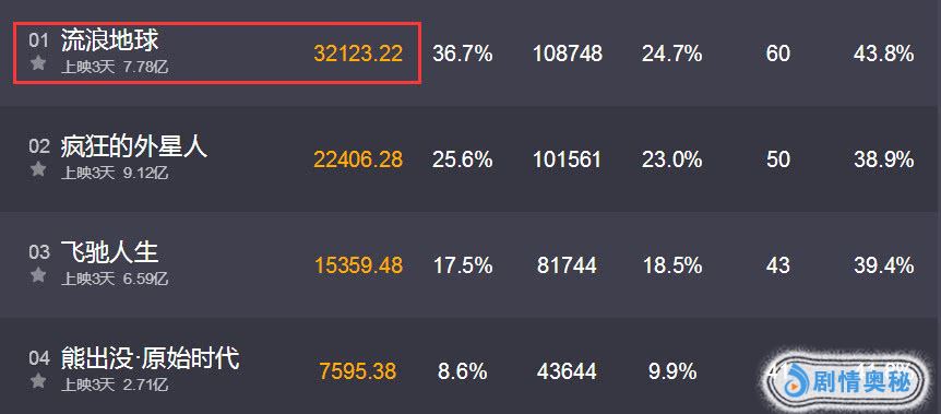 虽然吴京的《流浪地球》首映票房仅2亿垫底,不过上映三天《流浪地球》口碑大爆,票房也一直一路飙升单日票房砍下了3亿之高,《流浪地球》也反超了《飞驰人生》和《新喜剧之王》,如今不到三天时间《流浪地球》就反超了黄渤的《疯狂的外星人》夺得单日票房冠军,连黄渤都没有想到。而《流浪地球》的豆瓣评分高至8.4分口碑最佳,清一色的五星好评。