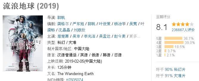 本周五,也就是明天2月8日,《流浪地球》将登陆美国22座城市、加拿大3座城市和随后的澳大利亚。《流浪地球》在国外上映后,能否在好莱坞争到一席之地?看看外媒的评价和观众口碑已经给了答案!