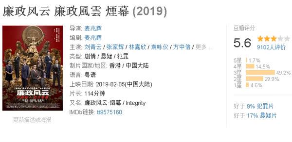 第六名:《廉政风云》由刘青云、张家辉、林嘉欣领衔主演的犯罪悬疑电影。(豆瓣评分5.6分)