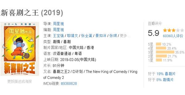 第五名:《新喜剧之王》由王宝强、鄂靖文、张全蛋等领衔主演的喜剧。(豆瓣评分5.9分)
