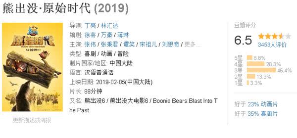 第四名:《熊出没·原始时代》是《熊出没》系列第6部动画电影。(豆瓣评分6.5分)
