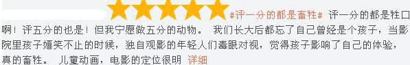 网友意思把这篇电影口碑评分低,归结于大人受小孩子影响,因为看电影时候,小孩子们嬉笑声音大,影响到大人观影,很多大人可能忘记自己曾经也是位孩子。
