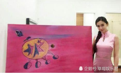 杨颖也曾创作过艺术作品,并卖出高价。但是让人看了有点茫然,感觉好像并没有什么主题,只是随便一涂就卖出了19万的高价。那幅画是以粉色为基调,一看就像大面积粉刷,是很有少女心,但是上面画的不明物体更是让人摸不着头脑,真的像一个不明星球,底下还生出了几个触角,似乎还有几个小鸟,也不知道我有没有看错,其它部分基本没有创作痕迹了。拍出19万的高价也是很让人意外了。