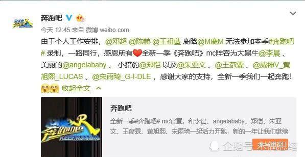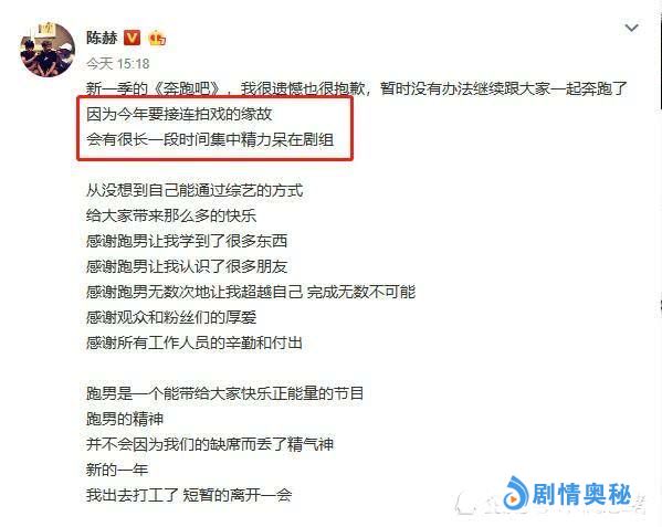 而近日,《奔跑吧3》节目组官微正式宣布全新的阵容,固定嘉宾的陈赫、邓超、鹿晗、王祖蓝四位退出,换成了朱亚文、王彦霖等新人。而随后陈赫也发长文表示了不舍,其中也道出了退出的原因是因为需要好好拍戏。